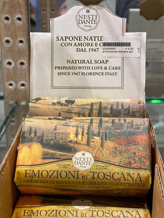 Luxe, handgemaakte zeep van de Italiaanse firma Nesti Dante. De Emozione in Toscana collectie is geïnspireerd op het prachtige Toscaanse landschap dat ieder seizoen weer van geur en kleur verandert. De Campagna Dorata zeep brengt een ode aan het heuvelachtige Toscaanse platteland met zijn welbekende goudkleurige graanvelden, rode klaprozen en slanke cipressen. De warme geur van de zeep weerspiegelt de mystieke aroma’s van het schitterende Toscaanse platteland.